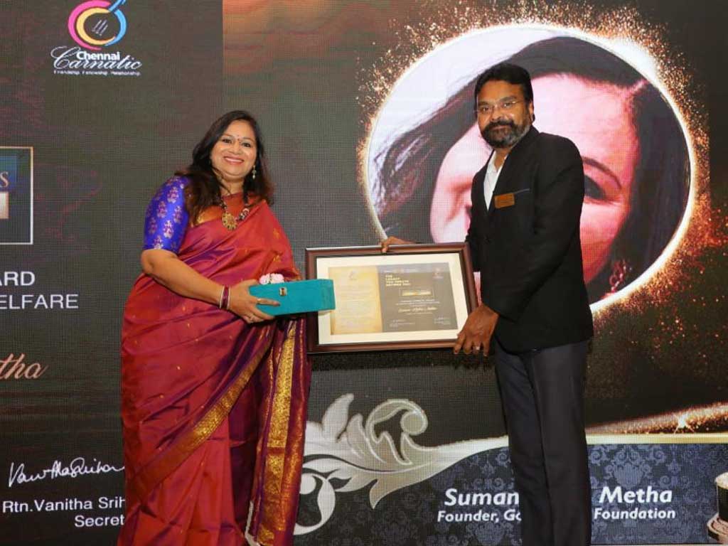 On March 8th, 2021, In the Rotary Club of Chennai Carnatic, Mrs. Suman Latha Metha Invited as a Chief Guest to their Awards night. She was given the award for her dedicated service to uplifting the girl’s community in Chennai city and for educating the girls for a better future.